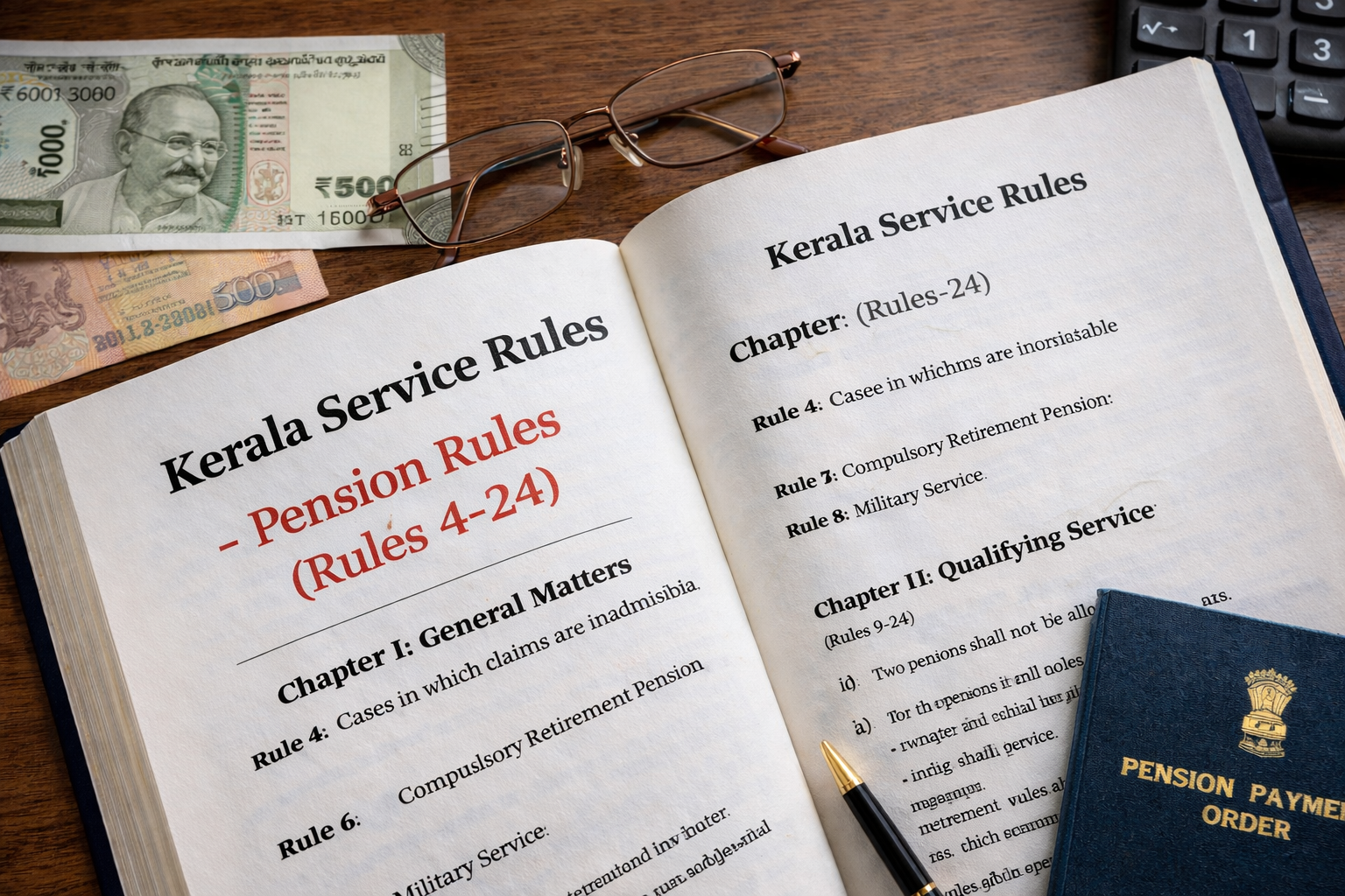 Pension Calculation Online കേരള സർവ്വീസ് റൂൾസ് (KSR) - നിയമപരമായ ആവശ്യങ്ങൾക്കായി ഒറിജിനൽ ഗസറ്റ് പരിശോധിക്കുക.